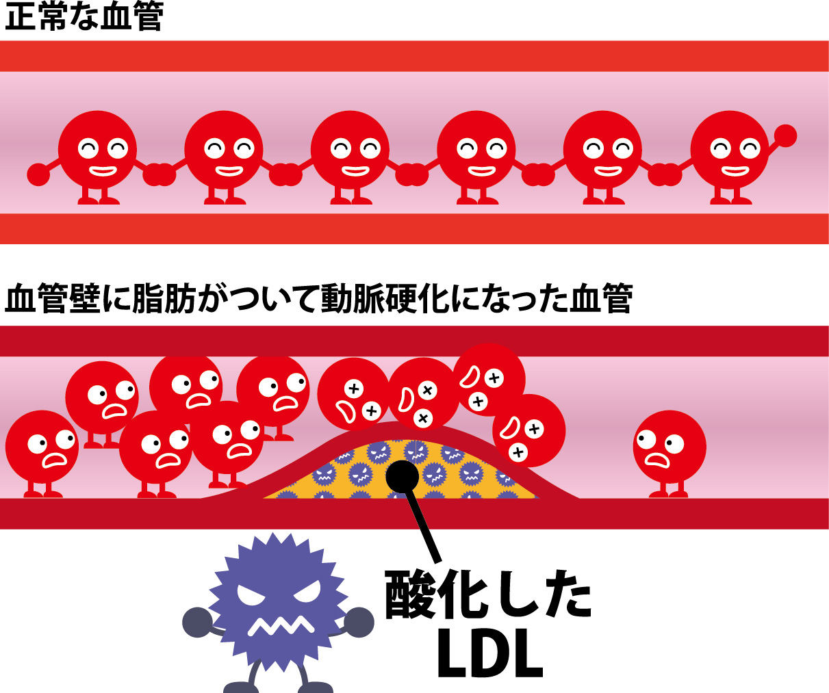 脂質異常症を放置すると、増えた脂質がどんどん血管の内側に溜まって動脈硬化の進行を促進し、ついには心筋梗塞や脳梗塞の発作の原因となってしまいます。