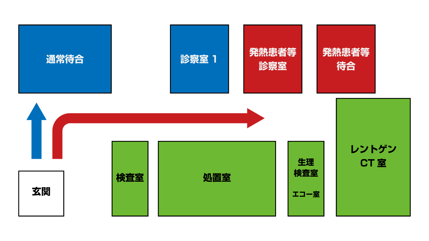 • なお、会計につきましても、発熱患者様専用の待合スペースにて対応いたします。